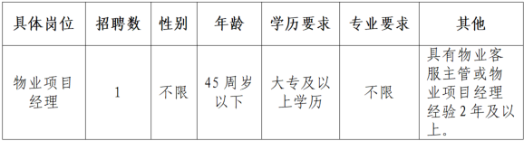 因工作需要,丽水市智汇人力资源服务中心有限公司面向社会招聘物业项目经理1名,具体公告如下: