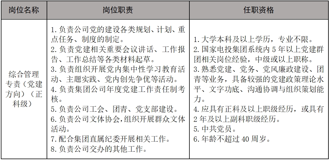 1.具有坚定的理想信念和良好的政治素质,有强烈的使命感和责任感,认同和遵循国家电投集团企业文化和价值观。