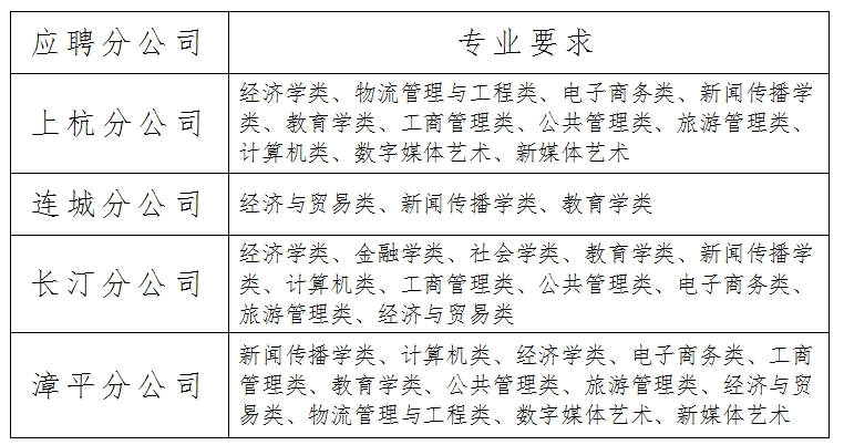 2.专业要求参照教育部发布的《普通高等学校本科专业目录(2024年)》,具体分公司专业要求详见下表。