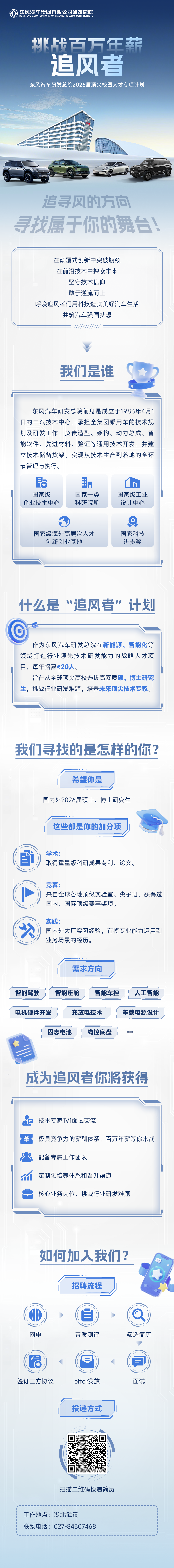 标签: 东风汽车研发总院 顶尖人才 汽车研发 人才计划 东风汽车招聘