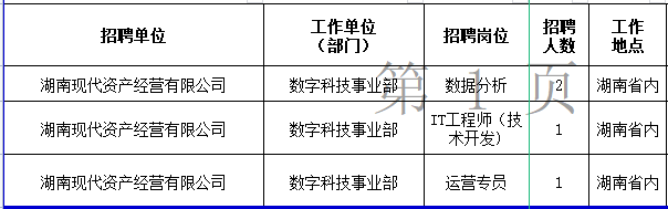 因发展需要,湖南现代资产经营有限公司部分岗位现面向社会公开招聘,公告如下: