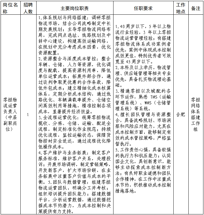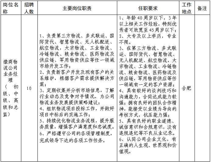 徽商物流公司猎聘公告发布之日起至2025年12月31日。如招聘到合适人选,以上岗位招聘即行结束。