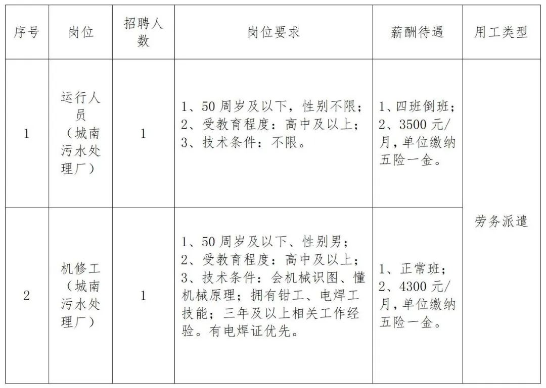 招聘岗位及岗位要求
