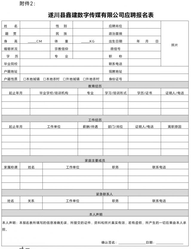 考生应保持固定的通讯设备且正常开通,及时接收有关通知,因考生本人原因未能参加招聘下一步工作的,由考生本人负责。本公告的最终解释权归遂川县鑫建数字传媒有限公司。