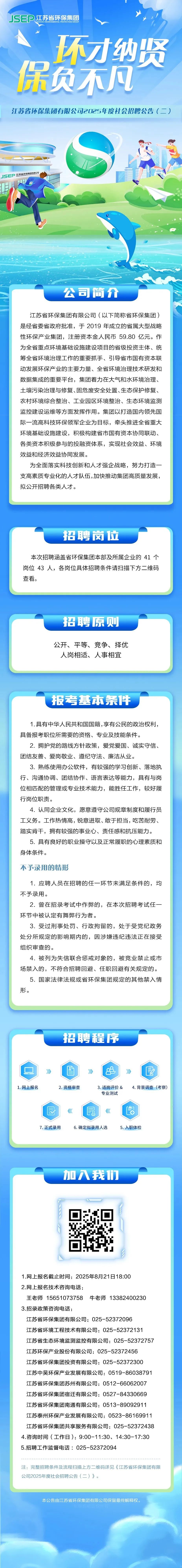 标签: 江苏省环保集团 南通有限公司 环保招聘 人员招募 江苏环保集团南通职位