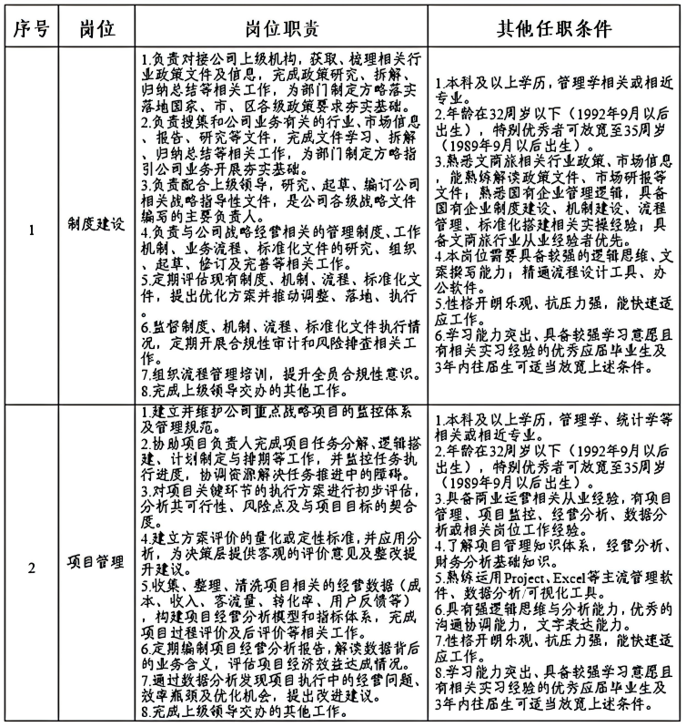 为满足津北文旅发展需求,特招聘劳务派遣制工作人员2人。
