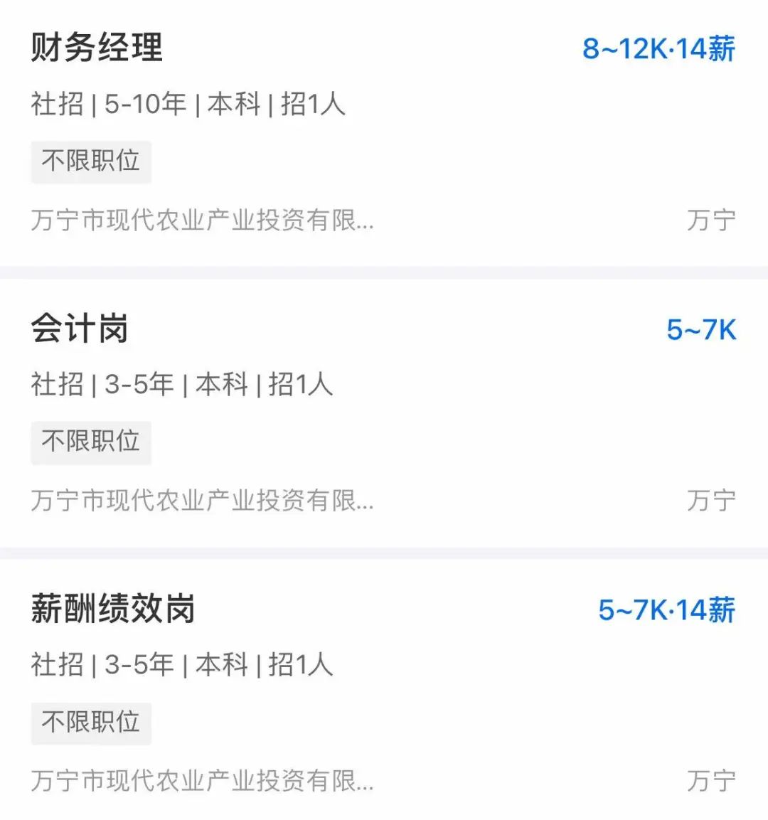 标签: 万宁市 现代农业 产业投资 招聘信息 招聘职位