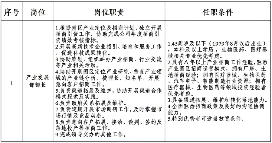 为深入落实区属国有企业改革的工作部署,提升国有企业市场活力及核心竞争力,完善应对市场竞争所需的选人用人机制,助力科技创新工作开展,拓宽技术转移服务领域,实现国有资产的保值增值和经济效益的持续增长,促进河北区高质量发展,经研究,拟面向社会公开招聘创佳公司产业发展部部长一名。