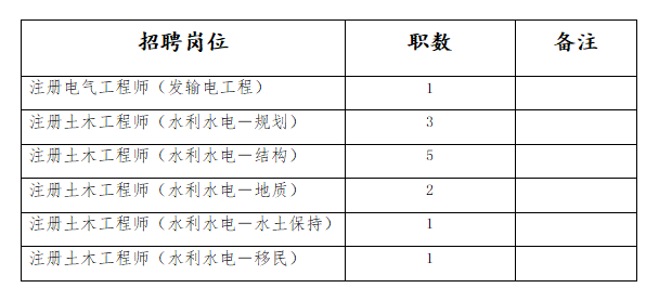 本次招聘以注册土木工程师、注册电气工程师等工程技术岗为主,详见下表:
