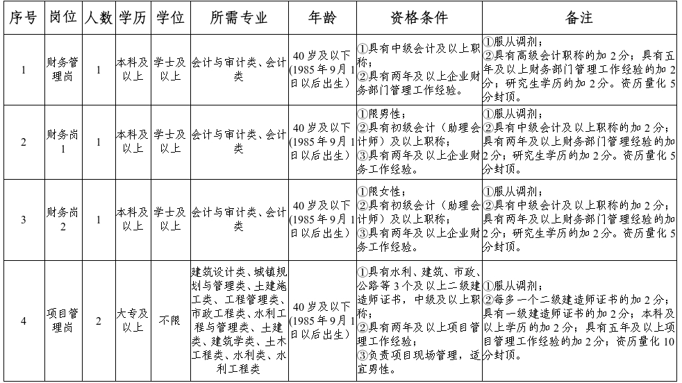 (三)资历量化。资历量化内容及评分标准见招聘计划及岗位条件表,财务岗资历量化满分5分,其他岗位资历量化满分10分,得分情况计入总分。