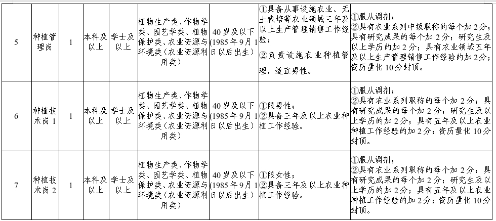 项目管理岗、种植管理岗、种植技术岗:综合成绩=笔试总分×40%+面试成绩×50%+资历量化成绩