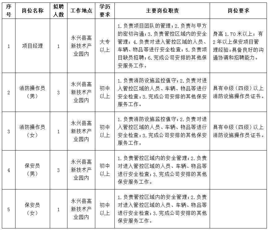 3.办公地址:郴州市北湖区人民东路35号保安服务大楼四楼人力资源部。