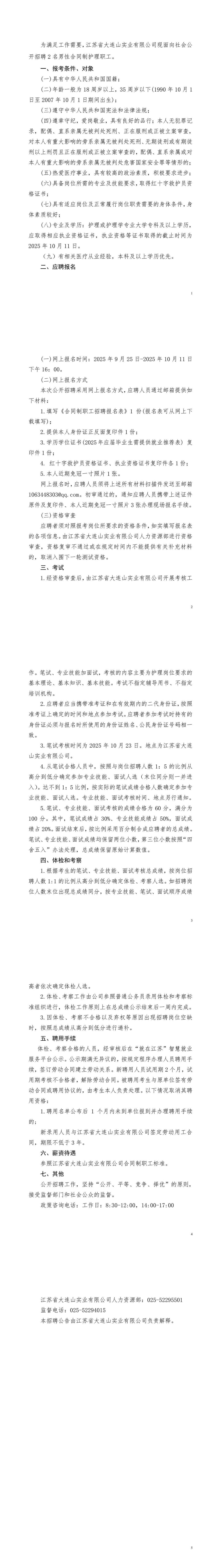 已结束 【合同制】2025年江苏省大连山实业有限公司医疗卫生技术人员招聘公告(招若干人,09月25日~10月10日报名)