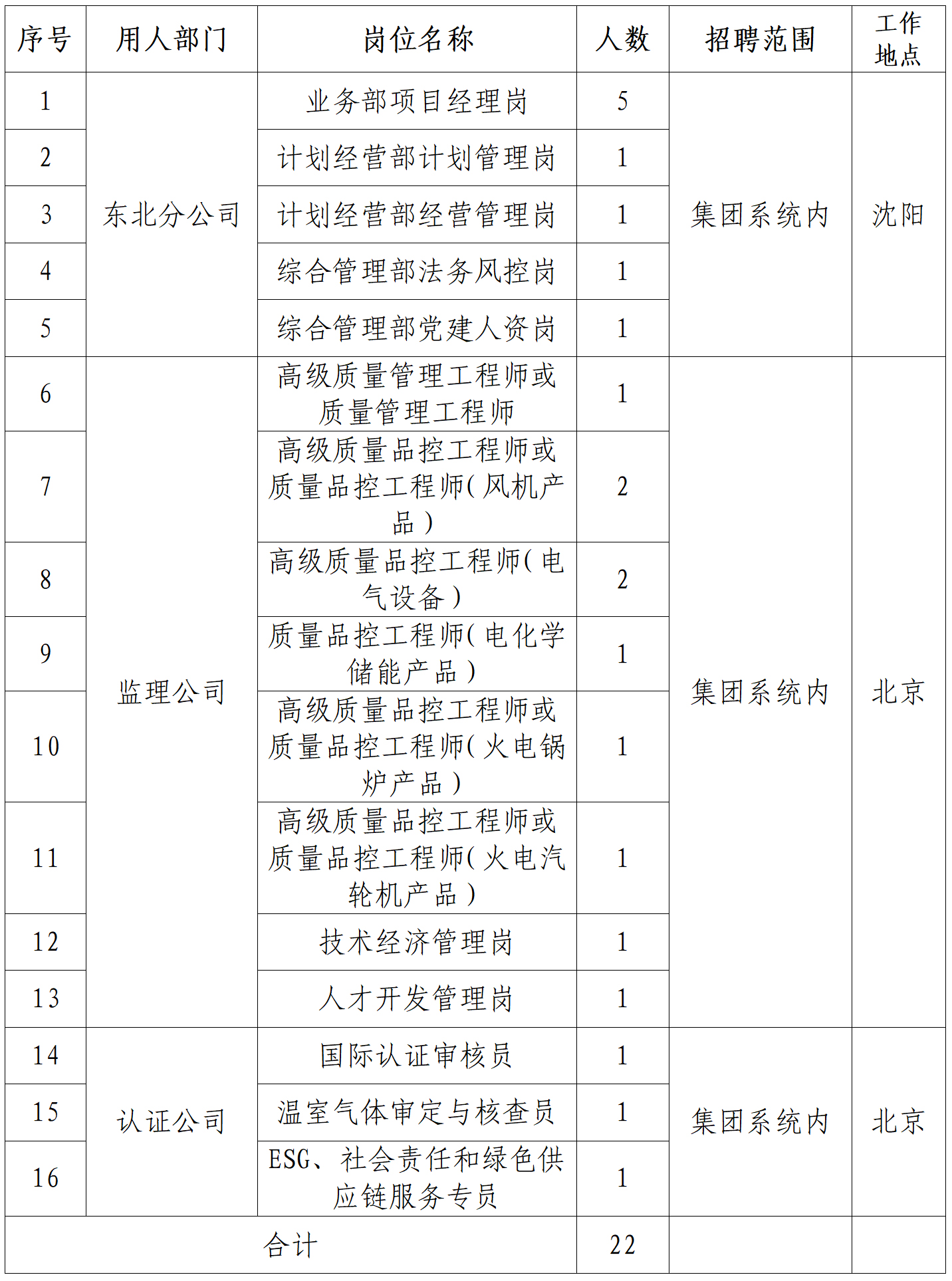 中国电能成套设备有限公司(以下简称“中国电能”)是国家电力投资集团有限公司(以下简称“国家电投集团”)全资子公司,成立于1972年,前身为水利电力部成套设备公司,1987年更名为水利电力部成套设备局,1999年改制为中国电能成套设备有限公司。中国电能是我国电力招标采购、设备成套、工程咨询、设备监理服务业的发起者和引领者,拥有国内电力发展历程中设备招标、设备成套、设备监理的领先纪录二十余项。现向国家电投集团系统内公开选聘相关岗位人员,具体事项公告如下: