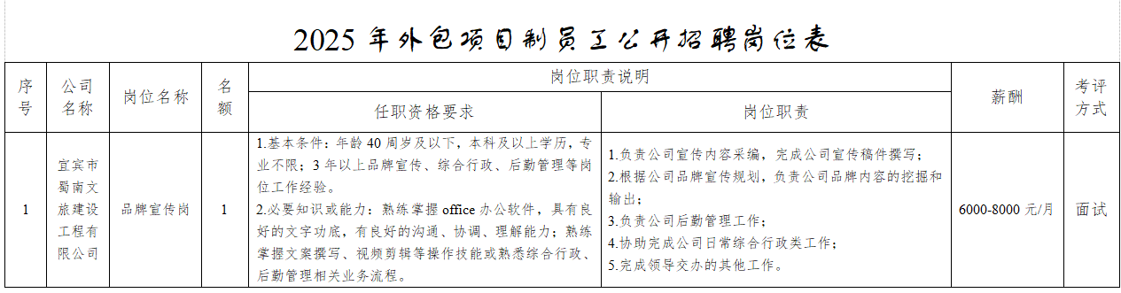 一、招聘岗位及要求