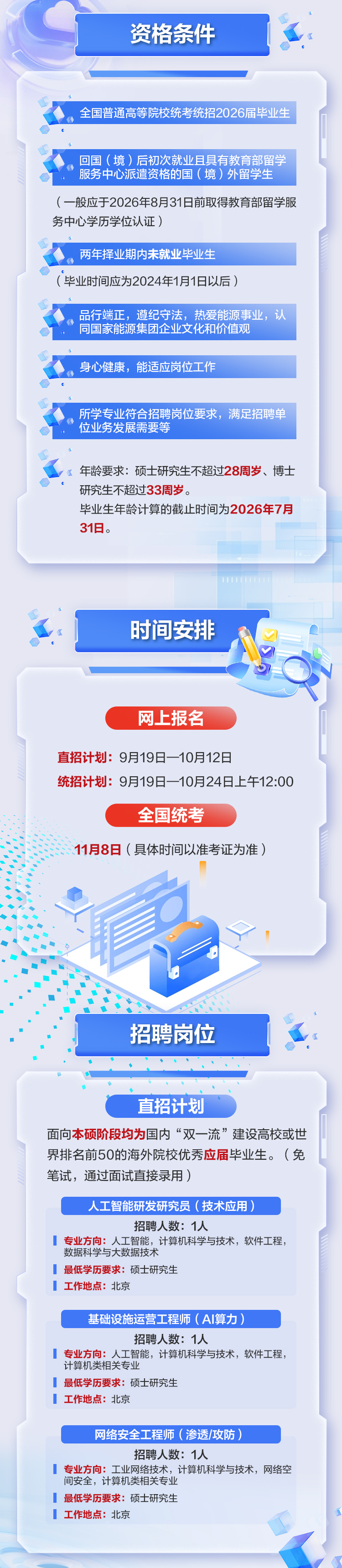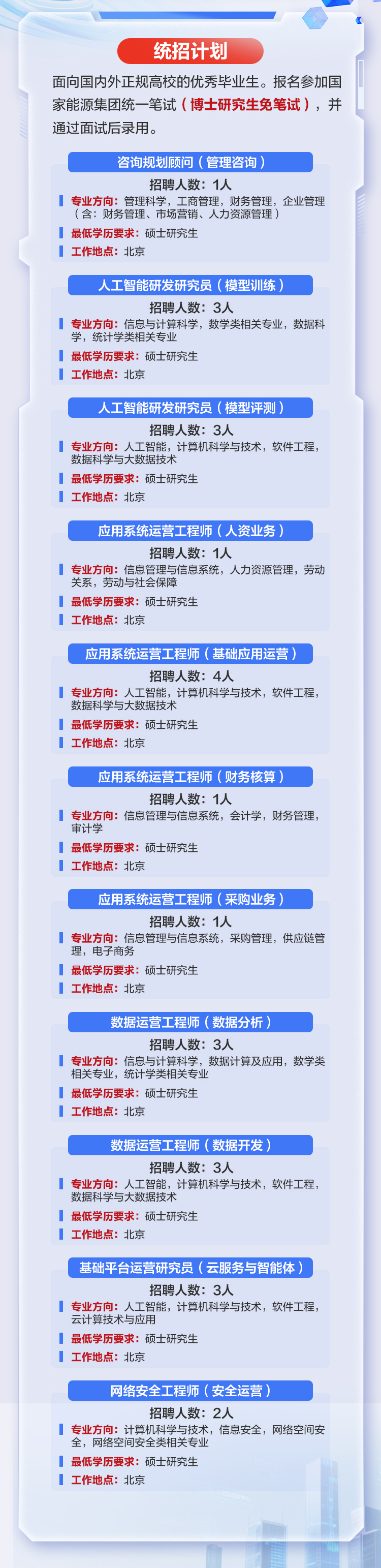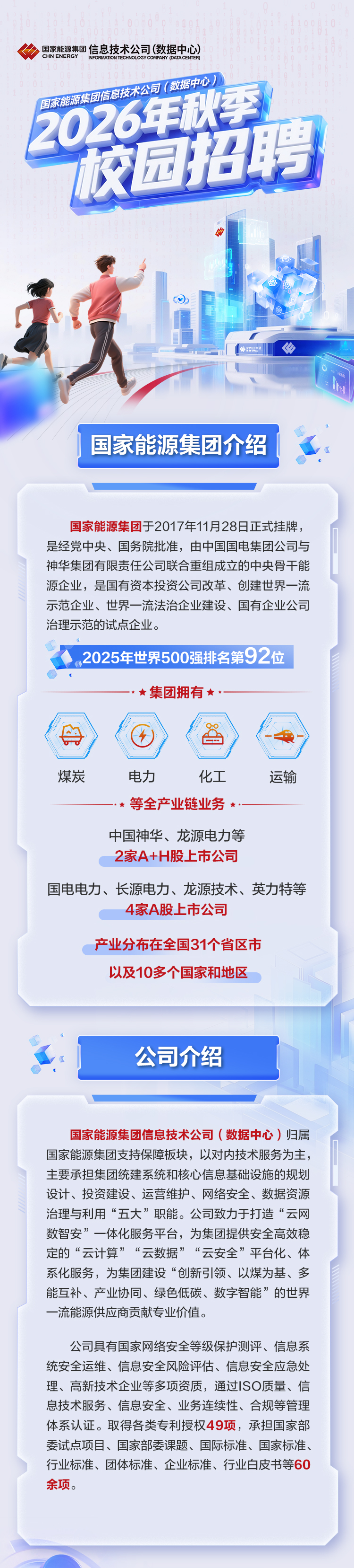 已结束 【合同制】国家能源集团信息技术公司(数据中心)2026年秋季校园招聘(招若干人,10月09日~10月24日报名)