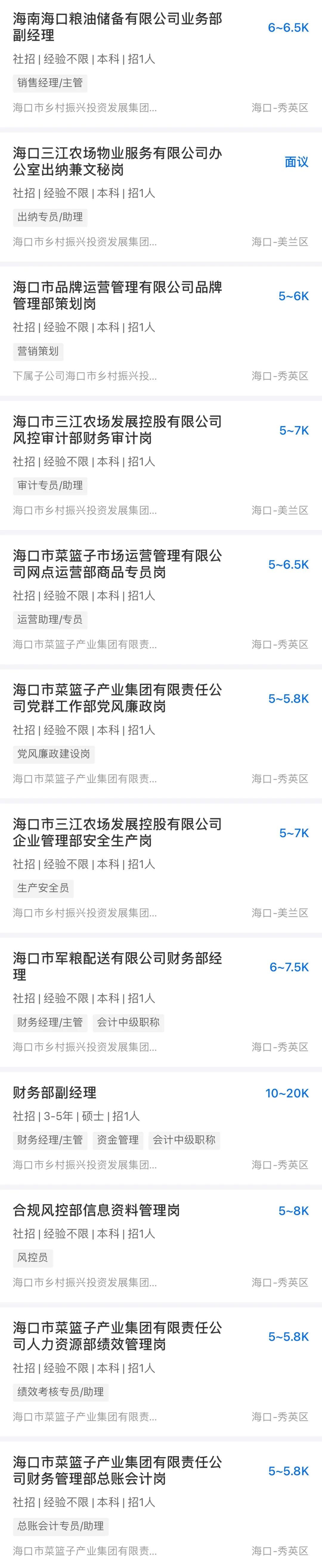 单位简介海口市乡村振兴投资发展集团有限公司(以下简称“乡投集团”)系以原海口市统筹城乡发展(集团)有限公为主体,整合海口市菜篮子产业集团有限责任公司、海口市三江农场发展控股有限公司、海口市粮油集团有限公司重组形成的市属6大国有企业集团之一。乡投集团定位为全市城乡融合发展的建设者、联农兴农与乡村振兴的引领者、蓝色海洋经济的主力军。