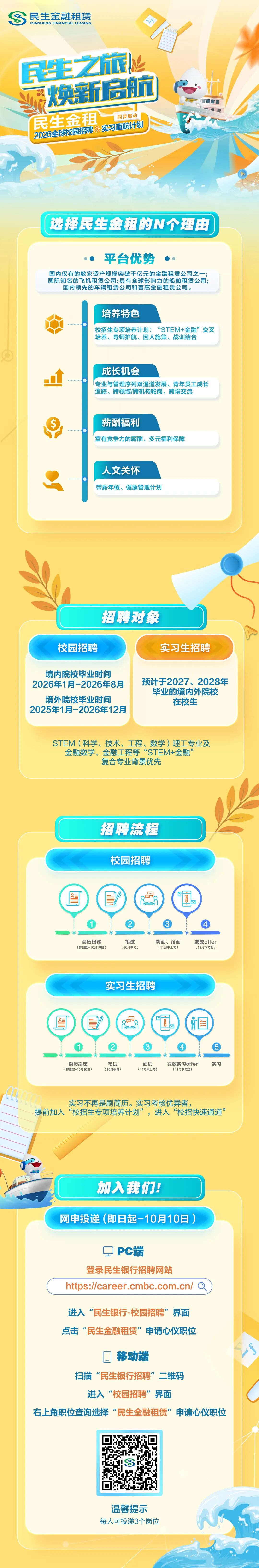 标签: 民生金融租赁公司 2026届校园招聘 校园招聘 金融租赁 金融行业