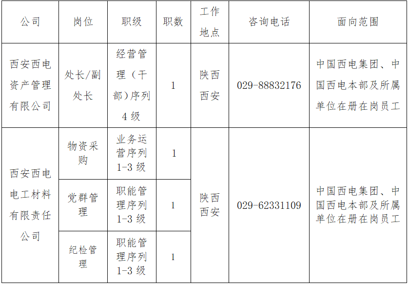 附件一 西安西电资产管理有限公司面向公司内部公开招聘公告.doc