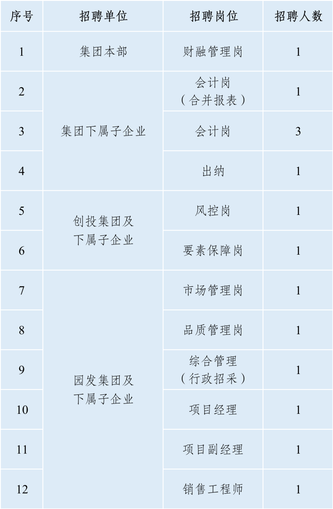 招聘岗位及人数