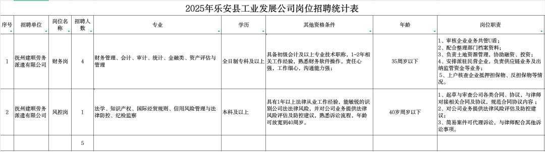 本次招聘人员由抚州建顺劳务派遣有限公司签订劳动合同,派遣至乐安县属工业发展有限公司工作,劳动合同期限原则上为2年(试用期2个月)。