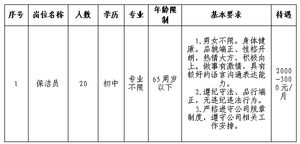 4.有一定的保洁工作经验者优先考虑,但我们也欢迎愿意学习、积极进取的新手加入;