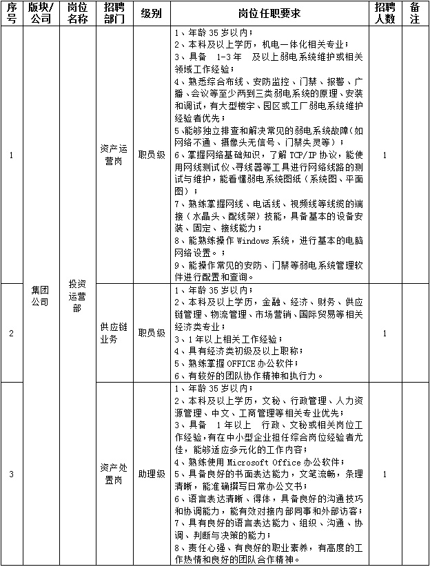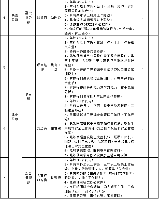 1、拥护中国共产党的领导,爱岗敬业,品德良好;2、遵守国家法律、法规,政治素质好,责任心强;3、品行端正,勤奋敬业,忠诚担当;4、年龄满18周岁,身心健康,具有符合岗位要求的身体条件;5、符合招聘岗位所需的年龄、学历、资历、专业、技能等要求,留学回国人员报考,需出具中国教育部的学历认证;6、与其他用人单位无劳动合同纠纷;7、有以下情形之一者不得报考:(1)有前科劣迹或涉嫌违纪违法正在接受审查尚未得出结论的;(2)受党纪、政务处分未满处分期限,或正在接受纪律审查、监察调查的人员;(3)曾在公务员招录、事业单位公开招聘考试中被认定有舞弊等严重违反招聘纪律行为的人员;(4)曾被开除公职的;(5)曾纳入失信被执行人且仍未处理到位的;(6)违反社会公德、职业道德,造成不良影响的;(7)从江西赣江新区永修投资集团有限公司或下属分、子公司、国资下辖的国有企业兄弟单位离职的、被公司开除的或当前在职的人员(劳务派遣、劳务外包等情况人员除外)(8)其他原因不适宜报考的人员。