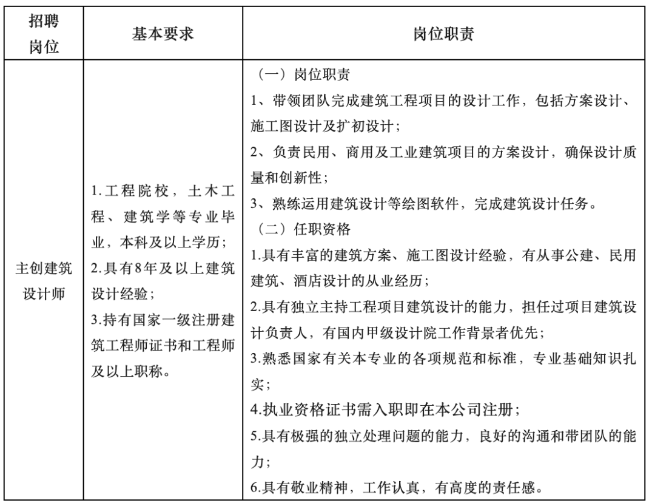 (二)候选人须取得国家教育部认可的本科及以上学历,专业需与应聘岗位高度相关(如土木工程、建筑学等)。