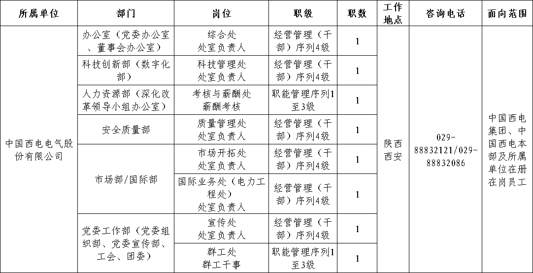 1.应聘人员应为中国西电集团、中国西电本部及所属单位在册在岗员工;