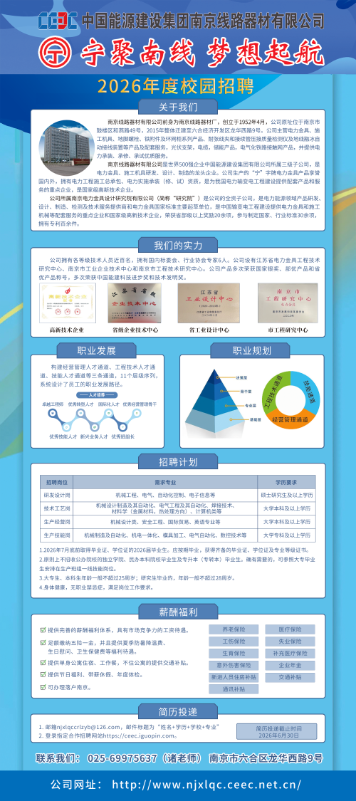 已结束 【合同制】中国能源建设集团南京线路器材有限公司2026年度校园招聘简章(招若干人,11月07日~11月22日报名)