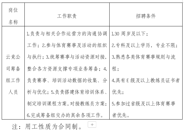 招聘云竞公司筹备组工作人员1名。