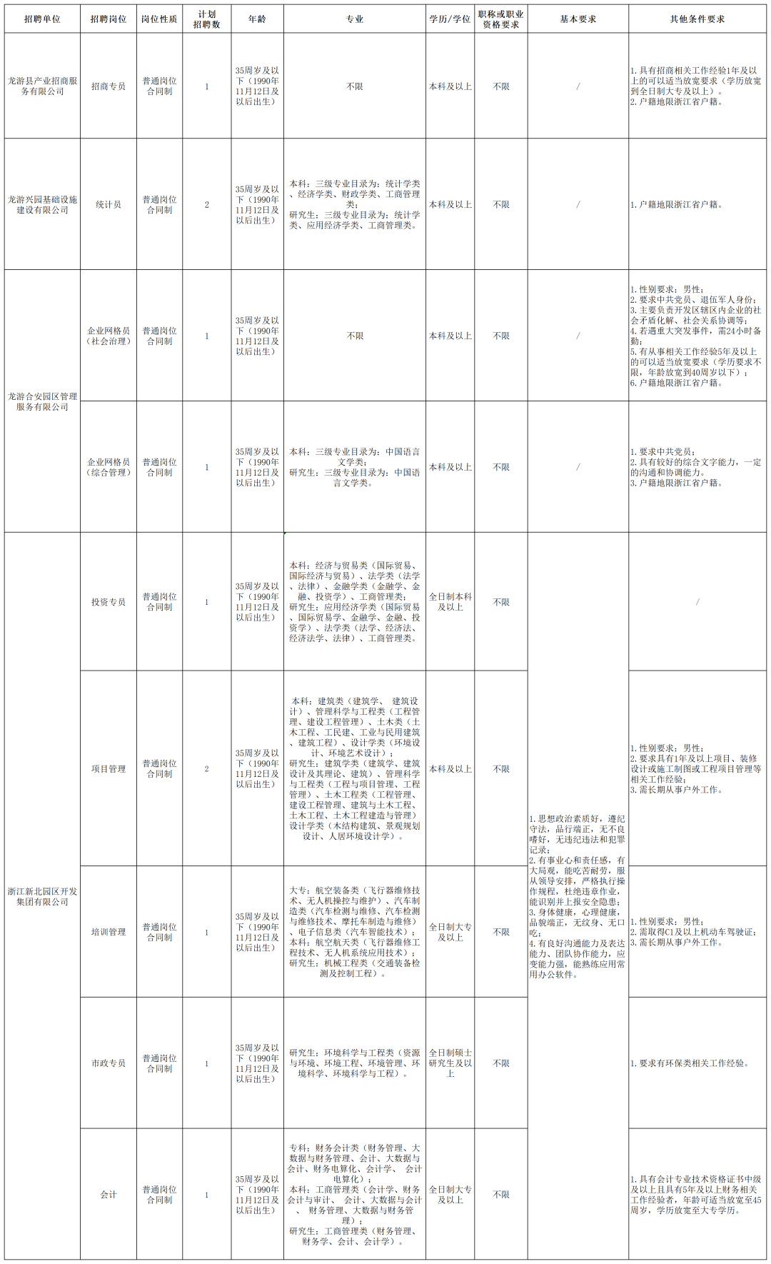 本次计划招聘普通岗位合同制员工11人。具体招聘岗位、人数和资格条件详见《浙江龙游经济开发区下属国资公司2025年11月公开招聘计划表》(附件1)。