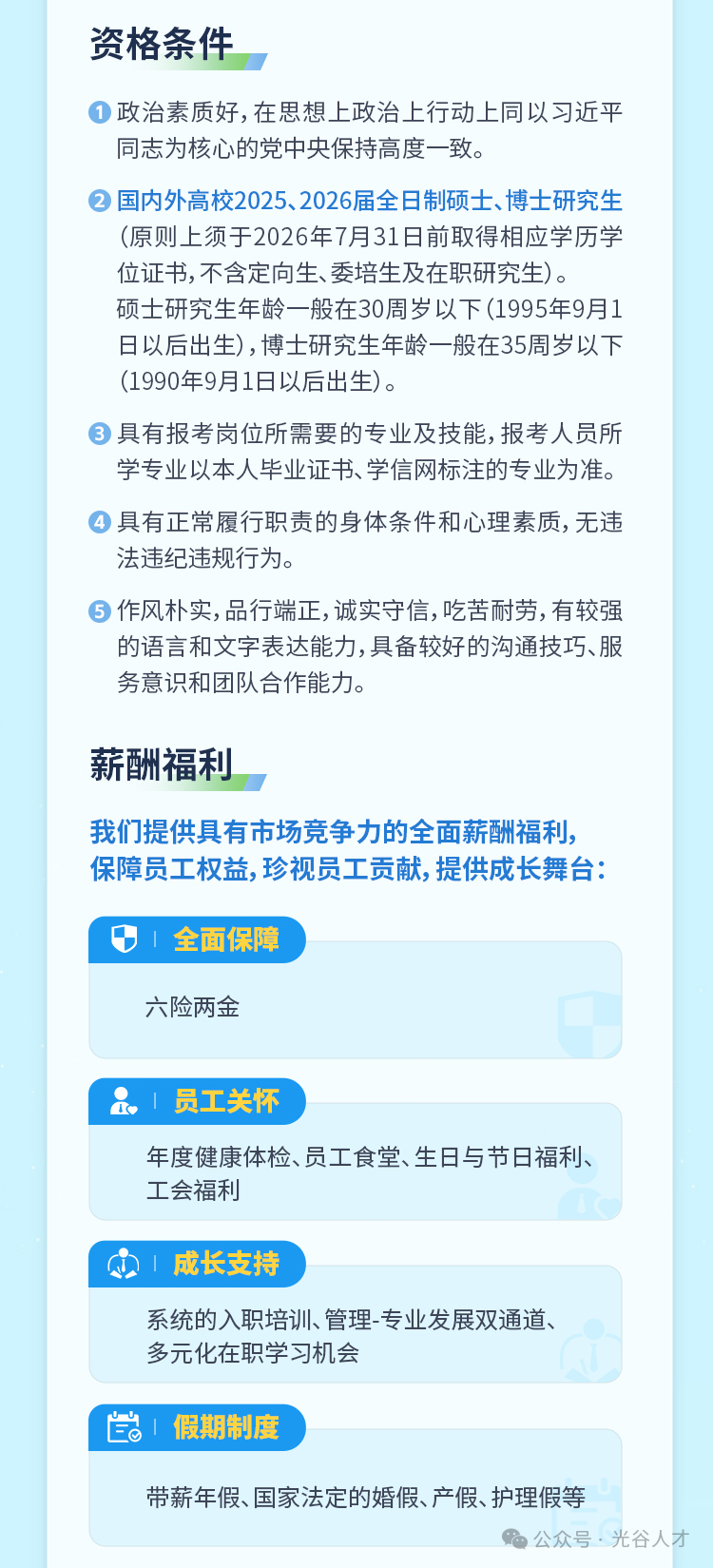 1、学历要求:面向国内外硕士研究生及以上学历2026届应届毕业生,硕士研究生院校及本科阶段院校符合公司招聘办法有关规定,毕业学历学位可取得学信网(国内)或教育部留学服务中心(留学归国)认证。