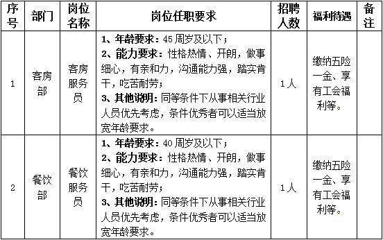 永修迎宾馆管理有限公司成立于2019年10月,是永修县农旅投资开发有限公司直接控股的国企全资子公司,因公司发展需要,决定面向社会公开招聘2名劳务派遣制工作人员,现将有关事项公告如下: