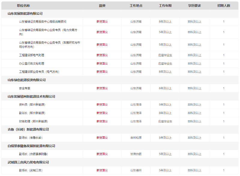 山东发展投资控股集团有限公司(简称山东发展集团)于2025年1月由原山东国惠与原山东发展战略重组设立,是定位于发展现代产业和战略性新兴产业、支持全省基础设施建设、推进新型工业化和服务绿色低碳高质量发展的国有资本投资公司。山东绿色能源投资有限公司、山东发展新能源有限公司作为山东发展集团的直属企业,根据公司业务发展需要,按照公开、平等、竞争、择优的原则,面向社会公开招聘优秀人才,现公告如下。