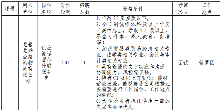 龙洲集团股份有限公司(以下简称公司)经福建省人民政府批准,于2003年8月29日注册成立,目前总股本5.62亿股,总资产约57.73亿元。2012年6月,公司在深圳证券交易所成功挂牌上市(股票代码:002682,公司网址:www.lzgf.cn),实际控制人为龙岩市国资委。目前,公司已逐步发展成为集现代物流、汽车制造及销售与服务、汽车客运及站务服务、成品油及天然气销售等业务为一体的现代服务产业化集团。公司因经营发展需要,拟对相关岗位进行公开招聘,具体公告如下: