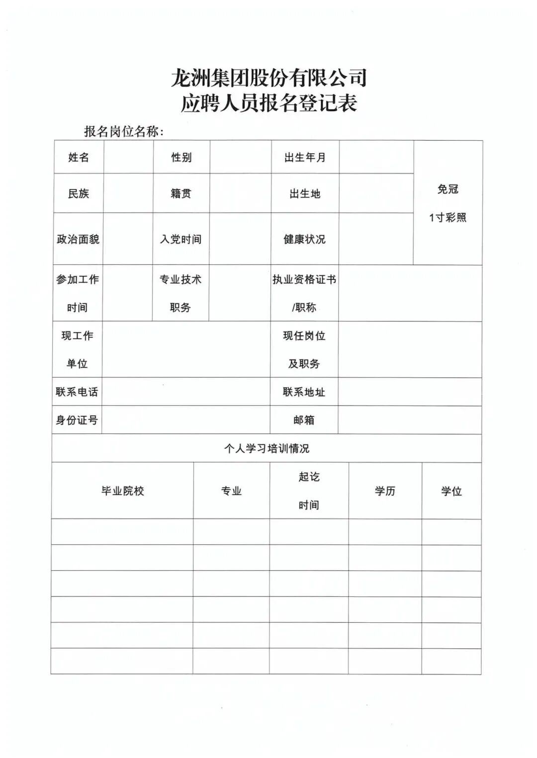 (1)下载并填写《龙洲集团股份有限公司应聘人员报名登记表》1份;