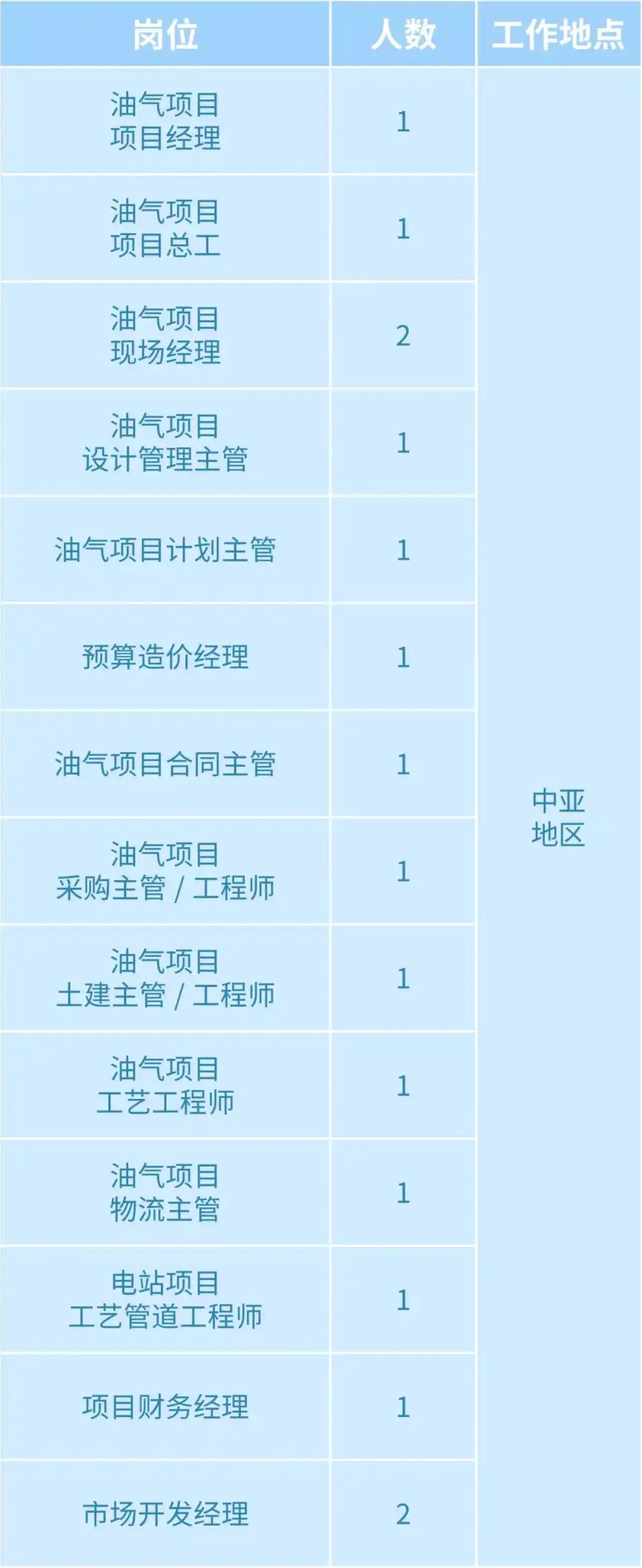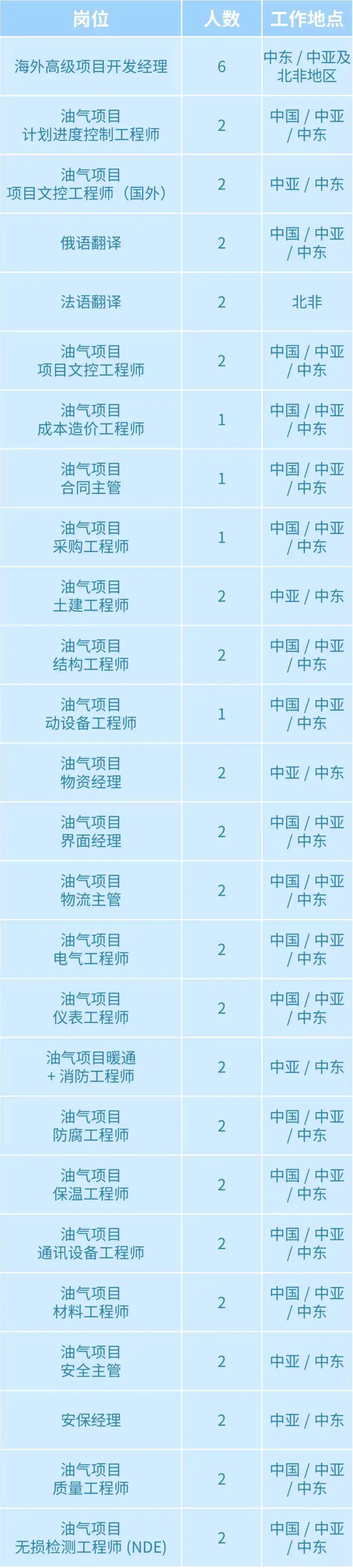 海外高级项目开发经理(油气领域) | 4-5 | 中东地区 |