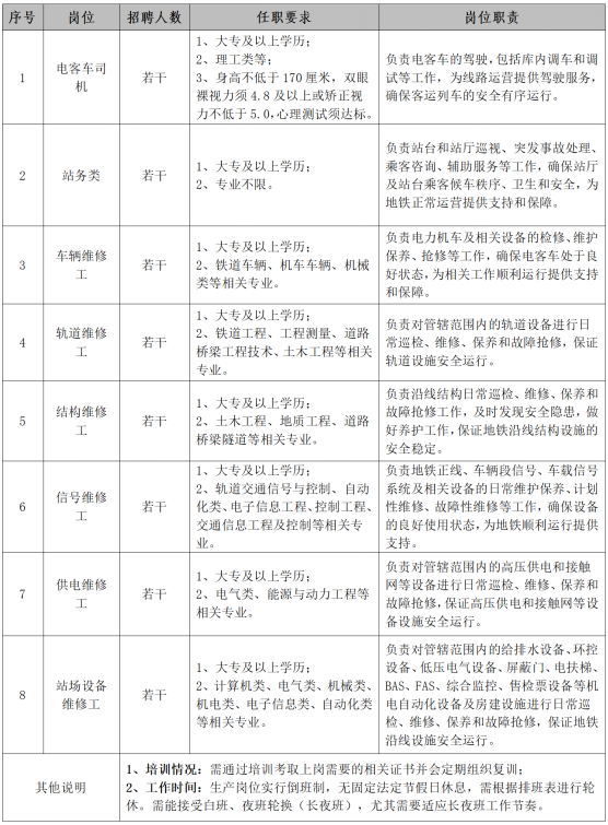 4、最新招聘岗位信息以杭州地铁运营有限公司招聘网站发布为准。咨询电话:0571-69821017/69821029,工作日上午09:30—11:30,下午15:00—17:00,联系人:朱老师、郭老师。