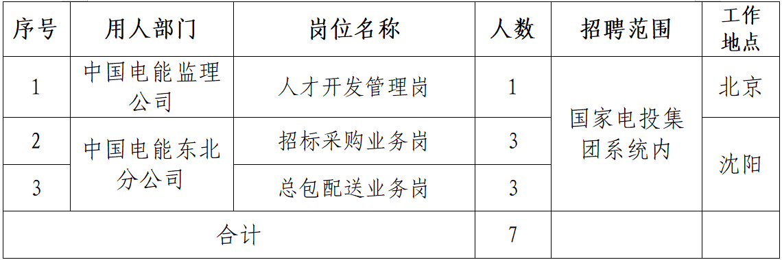 中国电能成套设备有限公司(以下简称:中国电能)是国家电力投资集团有限公司(以下简称:国家电投集团)全资子公司,成立于1972年,前身为水利电力部成套设备公司,1987年更名为水利电力部成套设备局,1999年改制为中国电能成套设备有限公司。中国电能是我国电力招标采购、设备成套、工程咨询、设备监理服务业的发起者和引领者,拥有国内电力发展历程中设备招标、设备成套、设备监理的领先纪录二十余项。现向国家电投集团系统内公开选聘相关岗位人员,具体事项公告如下: