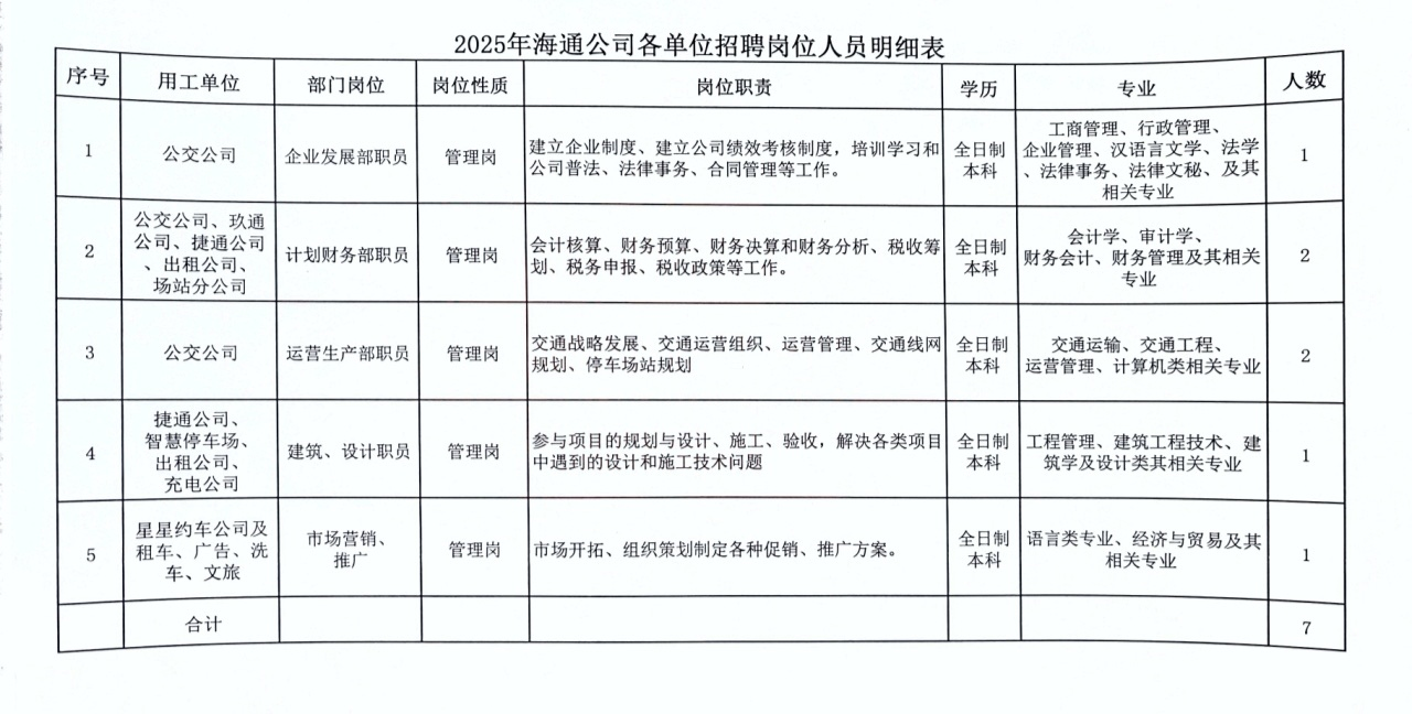 详见《2025年海通公司各单位招聘岗位人员明细表》