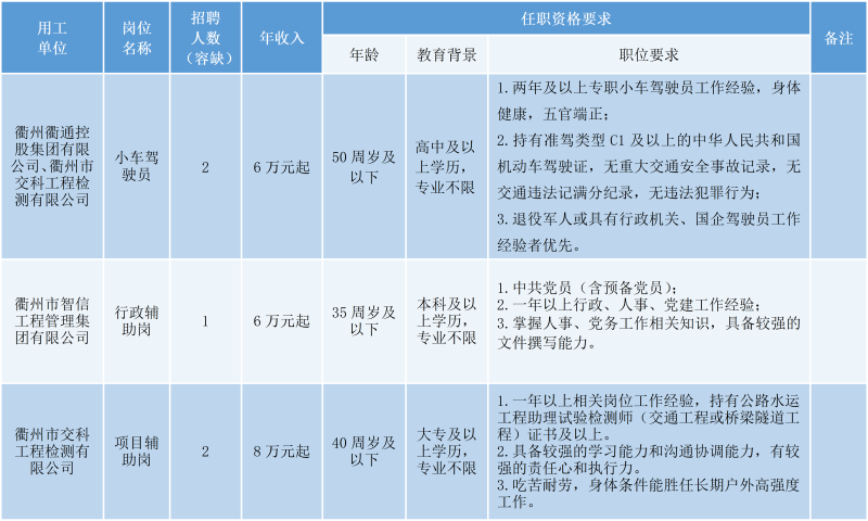 衢州衢通控股集团有限公司因工作需要,现面向社会公开招聘5名劳务派遣工作人员。具体事项公告如下: