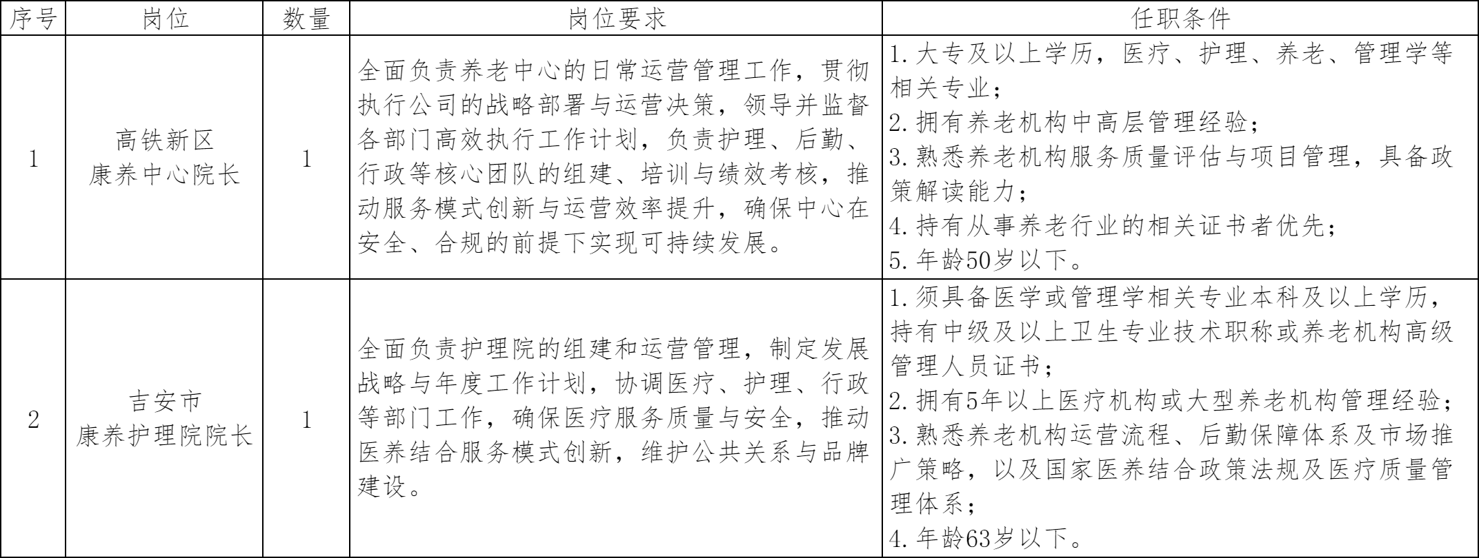 1.附件1:吉安城投健康养老服务有限公司2025年职业经理人公开招聘岗位及任职要求