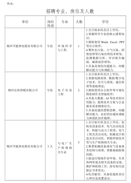 招聘信息将通过锦州市国资委网站、锦州热力集团官网、“优企职达”公众号发布。