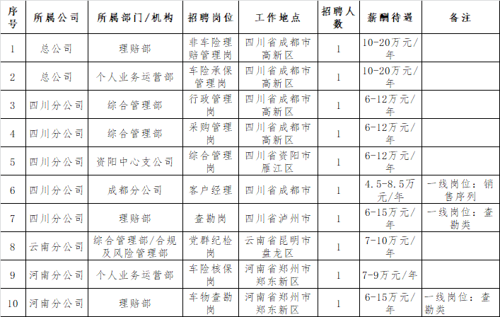 本次共招聘10人,具体岗位信息详见附件:《锦泰保险2025年12月员工招聘岗位汇总表》 。