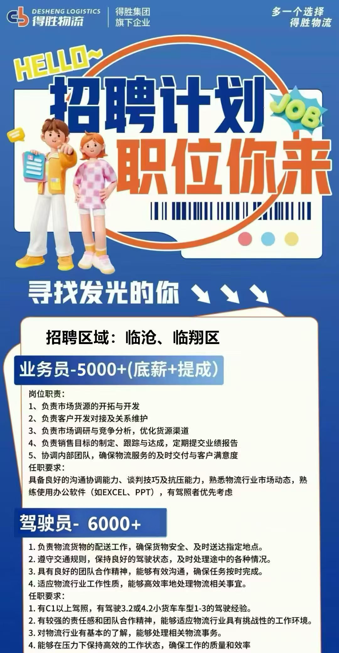 云南省得胜物流有限公司临沧分拨中心招聘信息