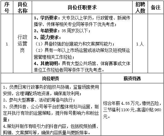 2、面试采取综合化面试形式,主要考核应聘人员的电脑操作能力、语言表达能力、组织协调能力、实际工作经验、工作责任心及岗位匹配性等,满分100分,分数占总成绩的100%。
