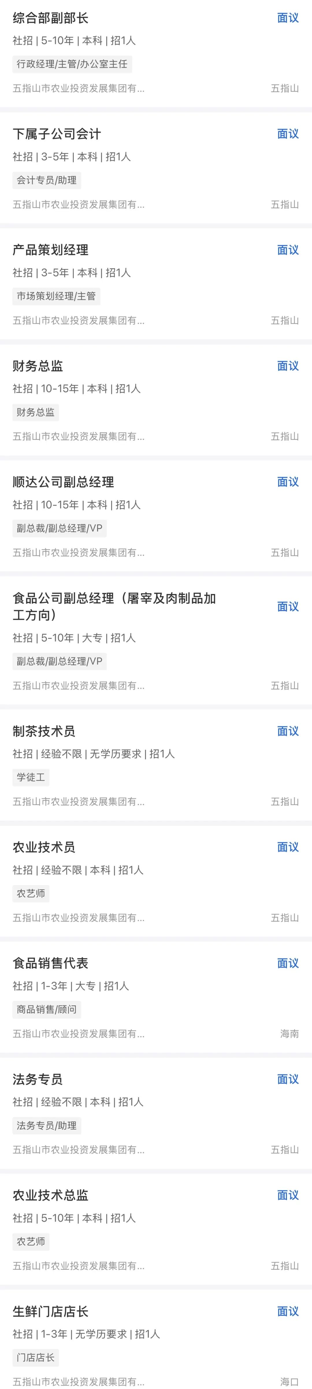 五指山市农业投资发展集团有限公司是五指山市市属国有独资企业(以下简称“农投集团”),前身为五指山市畅好农场,始创于1958年,2023年9月改制更名为五指山市农业投资发展集团有限公司,出资人为五指山市国有资产监督管理服务中心。公司定位:以“发展农业产业、振兴乡村经济”为宗旨,以“投资涉农产业项目,推进农业产业化发展,提升国有资产经营效益”为中心,大力推进农业、农村基础设施融资、投资建设及运营管理,主要承担涉农国有闲置性资产盘活利用、涉农经营性资产管理运营、新兴农业产业项目投资融资、特色农产品品牌市场提升四项主要职责。现下设9家全资子公司,内设机构6个。