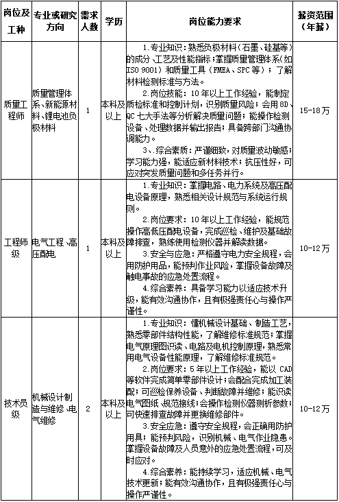 1.基本要求:年龄50周岁及以下,具有相关行业5年以上工作经验,熟悉分切机的操作流程和维护方法;身体健康,能够适应车间工作环境和生产节奏。
