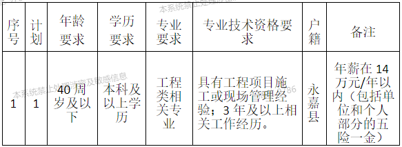 (一)招聘岗位:工程管理1名